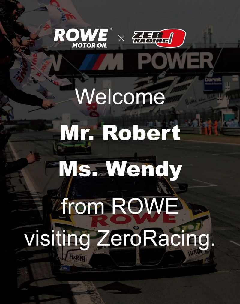 On July 21st, Mr.Robert, Head of ROWE Motor Oil Asia-Pacific region, and Ms. Wendy visited ZeroRacing in Shenzhen. Zero Racing team warmly welcomed the two guests. Mr.Robert's visit also marked another reunion between the two parties followingROWE's "China Invited Partners Germany Trip" held last month.