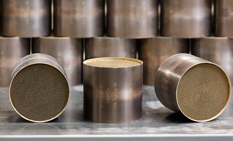A:HJS 100 钼三元催化(每平方英寸(30.48平方厘米)中的的孔数),提供约95%以上的流量,其三元催化载体结构为3涡旋设计。