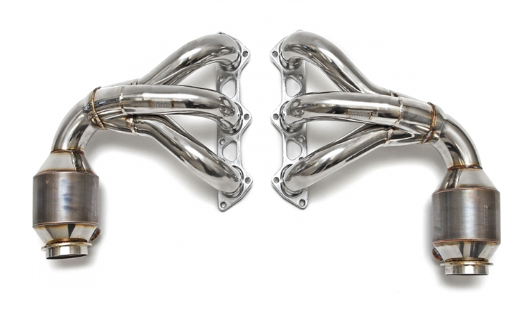 图:FabSpeed用于保时捷997 GT3和GT3RS的排气头段上搭载的大体积HJS催化器。除此之外,我们耳熟能详的Capristo、MILLTEK、