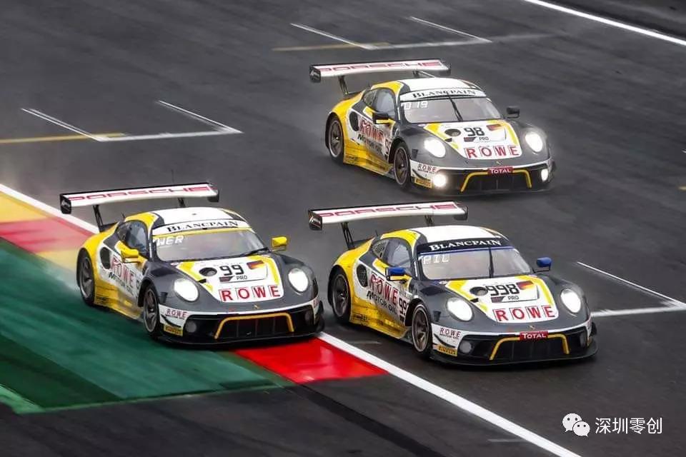 2019年7月28日,在上周末结束的比利时斯帕24小时耐力赛中,德国厂队ROWE RACING三台保时捷911 GT3R全