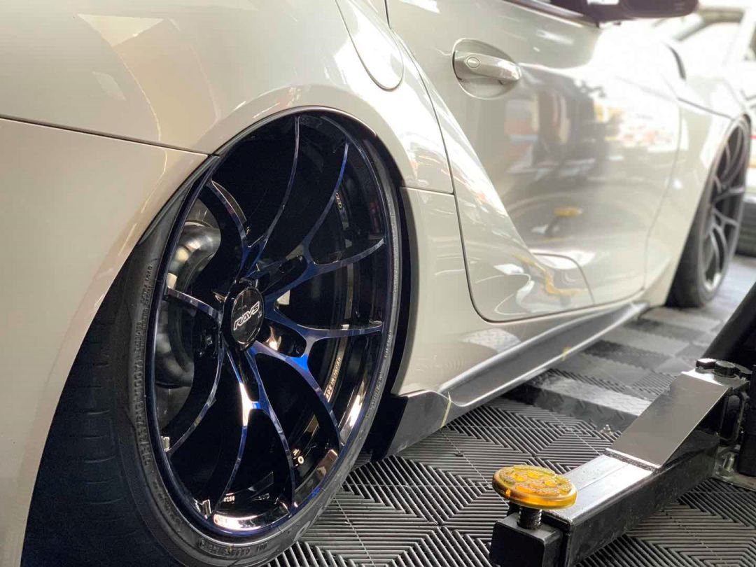 有留意年前我们所发的RAYS东京车展相关报道的小伙伴,相信对展位那辆Show car—— Supra(A90) “脚下”