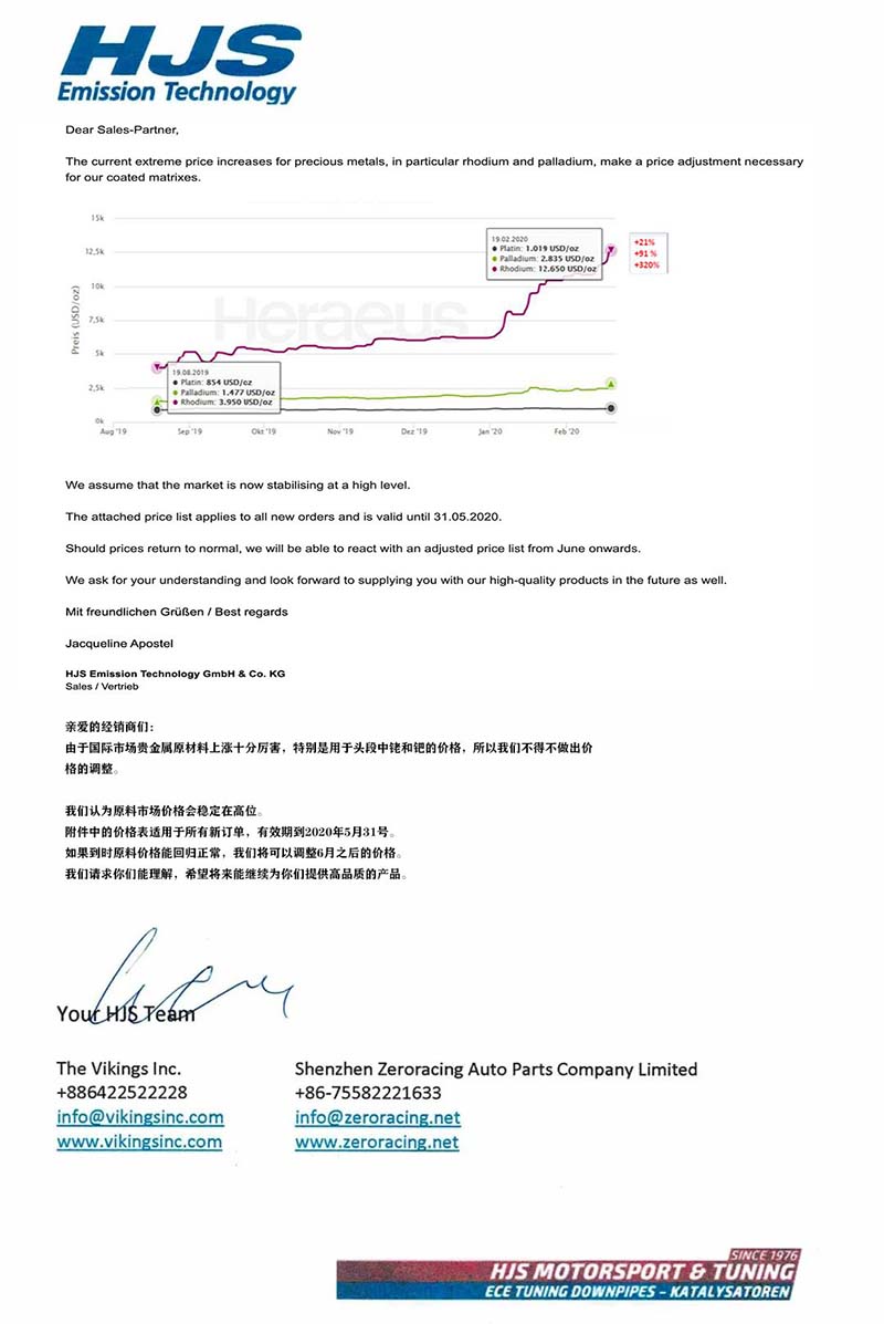 良好的体验,新订单的价格调整将会维持2020年5月31日,HJS表示会在6月份根据市场行情再次做出调整。