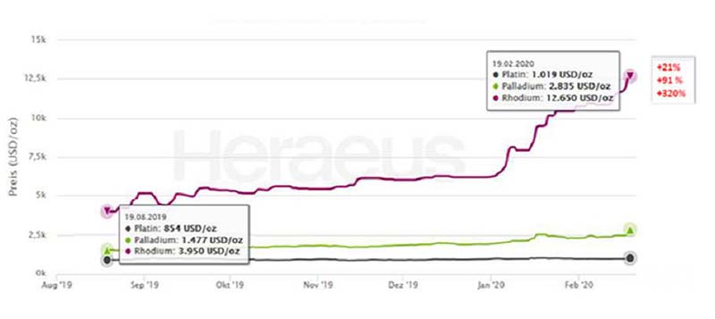 铂、钯、铑三种贵金属原材料是保证HJS三元头段满足欧六排放需求的关键,这三种贵金属能够与汽油里的硫和铅