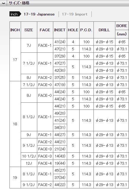 为17~19寸,数据符合众多车型需求,喜欢的小伙伴千万不能错过。