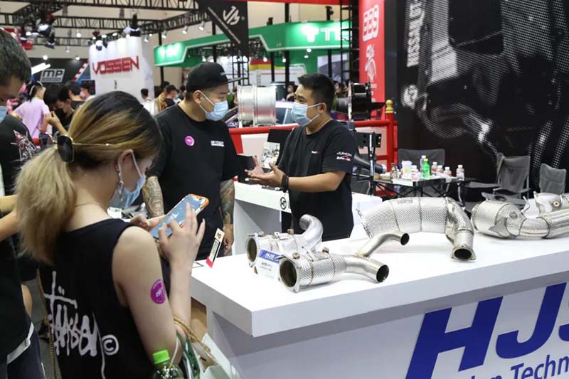 BBS展区依旧打得火热,同台展示的Capristo排气、HJS头段、WT中冷这类进、排气专家所展示的产品也同样引来人潮。