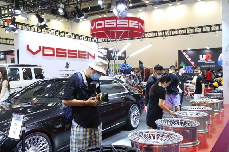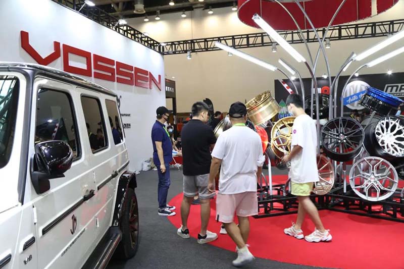 VOSSEN独立品牌独立展览足以展现出品牌的气势。数十款轮毂的展示以及现场气氛,让现场观众过足眼瘾。