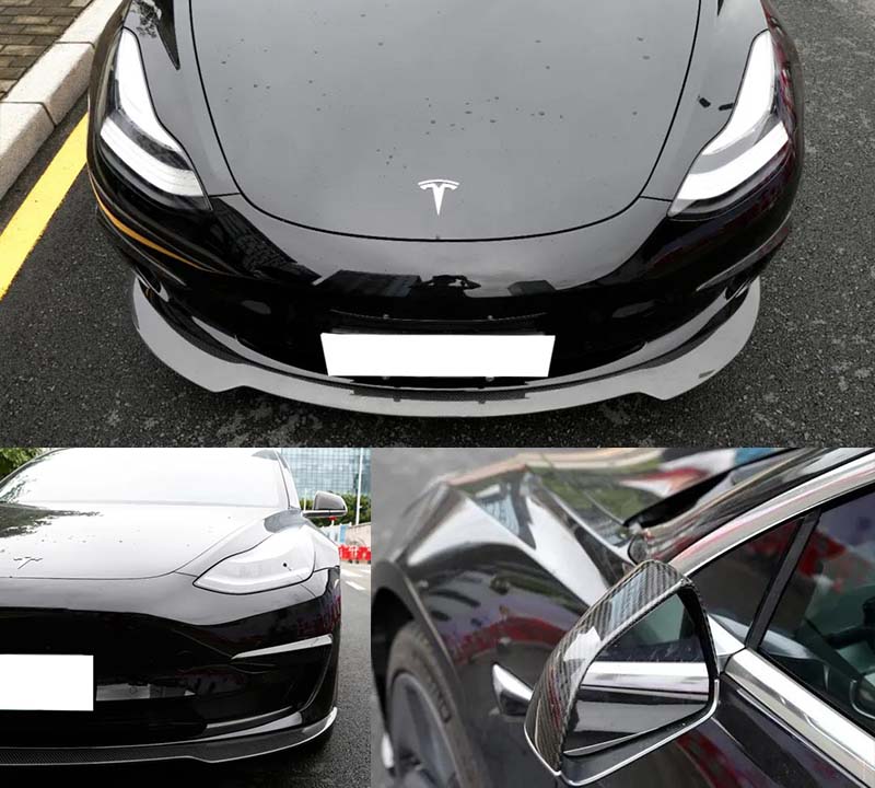 作为一款电动车,Model 3在改装的重心上更偏向于外表。Gratech的所新出的碳纤维前唇、风刀、后视镜,能够为