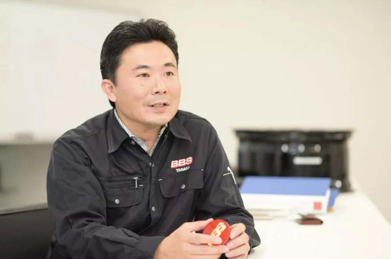 田中先生向我们展示的是BBS JAPAN的人气轮毂 "LM"的仿制品。正规品是铝锻造的2片式轮毂,而这个轮毂是铸造