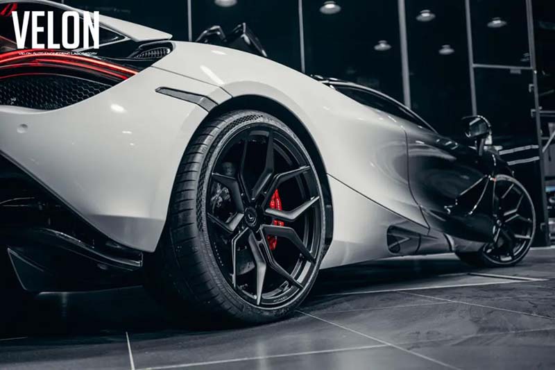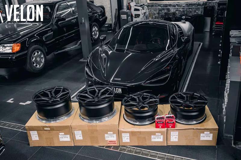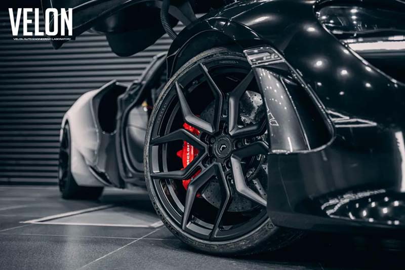 辐条的设计配合大尺寸的特性可以 展示,迈凯伦720S这款超跑引以为傲的 碳陶瓷刹车系统,匹配米其林PS4S 高性能轮胎,能让整个簧下更显气场。