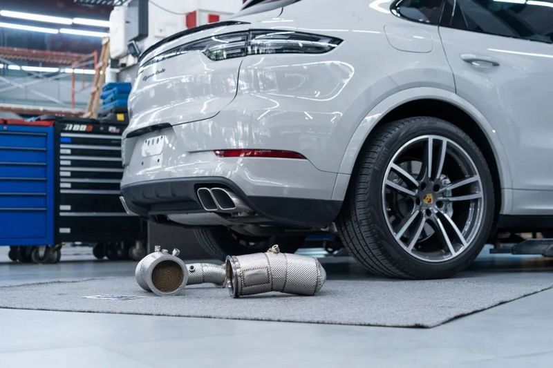 Cayenne Turbo释放引擎废气。