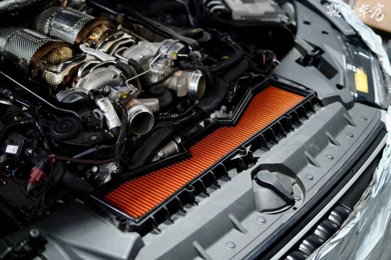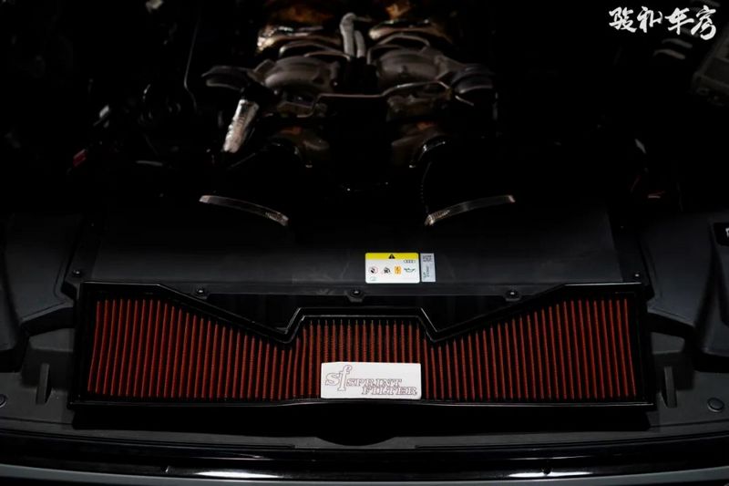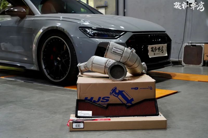 三元巨头HJS针对新款国六车型推出的高流量头段搭配SF空滤,能让这辆RS6提升更高进排气效率,