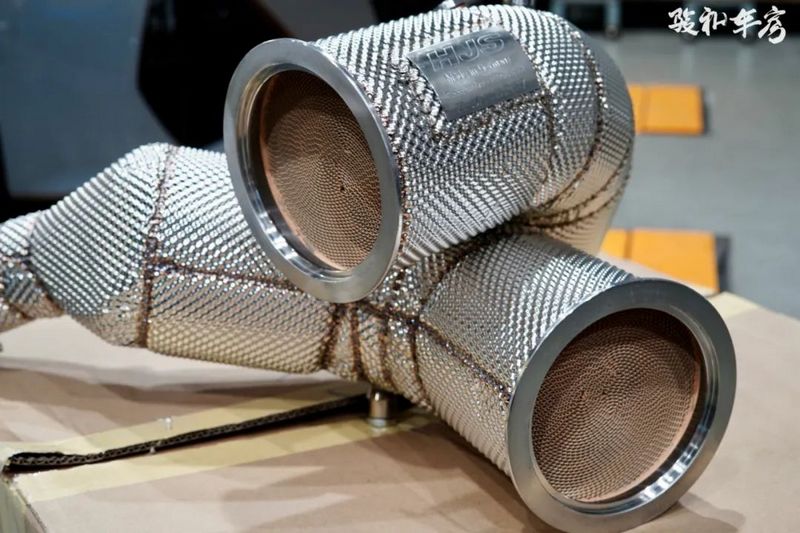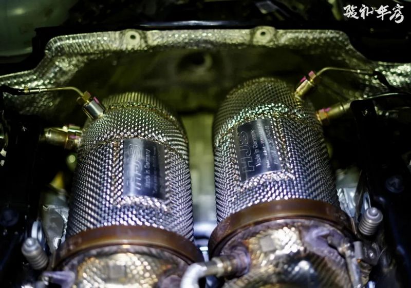 但对比国五车型,高转时的驾驶体验会有所下降。所以这辆国六版本的RS6通过HJS×SF进排气升级的方式,
