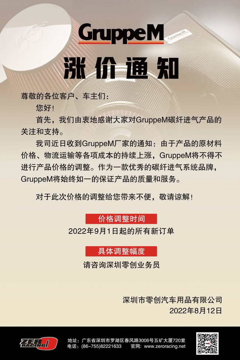GruppeM涨价通知温馨提醒:2022年9月1日起进行价格调整,如有订货需求可提前下订单!