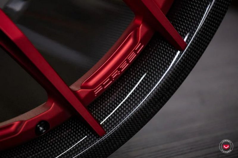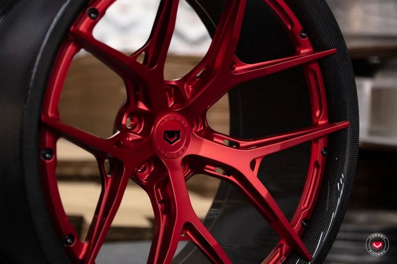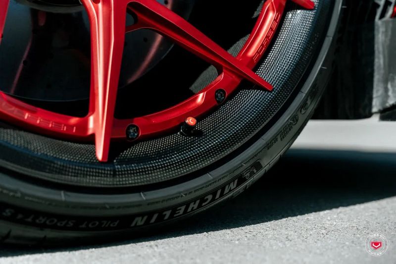 轮辐与轮辋间采用了VOSSEN精心设计的钛合金铆钉结合,能够进一步减轻轮毂的重量。该款轮毂目前提供了