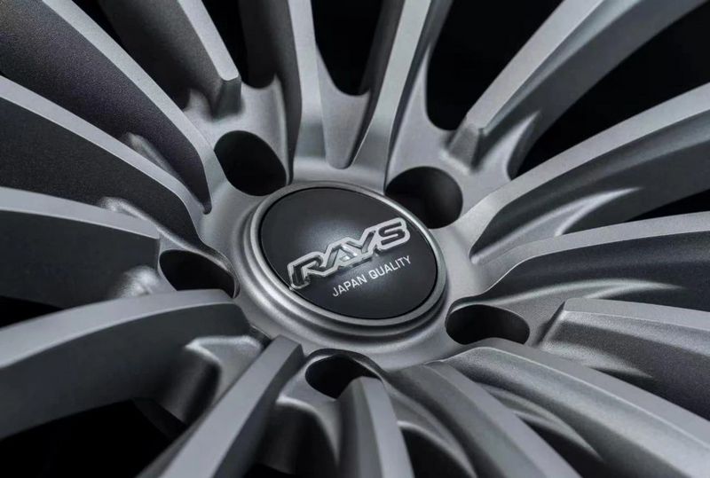 中心盖则将原来的大理石底纹改为银黑渐变搭配RAYS立体标志,进一步提升轮毂的立体感。轮辋边缘的标志也