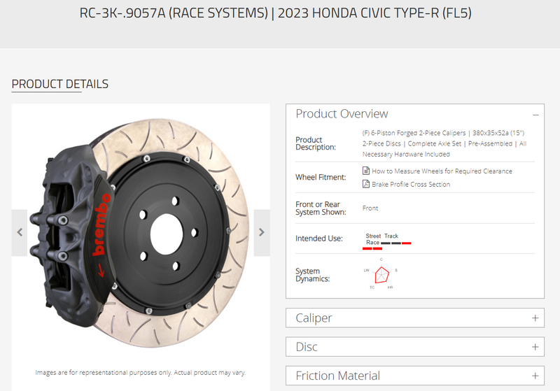 从Street(街用)、Track(竞技)和Race(赛用)三种不同场景,Brembo UPGRADE系列产品针对Type-R FL5