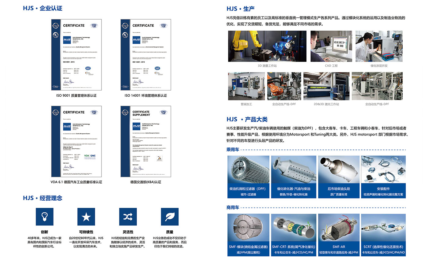 HJS一直以来都坚持将环保放在首位,专注于乘用车、商用车以及性能车&赛车项目的催化和减排技术。通过对环保技术进行不断的创新,来减少汽车有害物质的排放,实现保护环境、节约资源的目标。在过去几十年的时间里,HJS就凭借着技术的创新,不断地推动汽车环保事业向前发展,并且取得了重大的突破和成功。