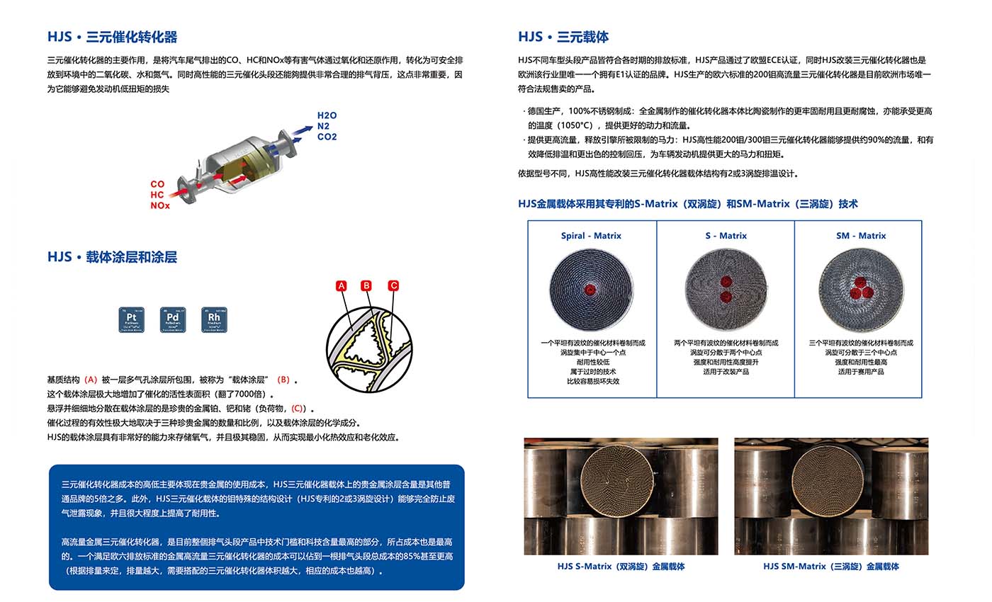 HJS是德国老牌顶级三元催化头段品牌。世界各大知名排气三元催化几乎均出自HJS。高流量三元达到欧六排放标准,恢复原厂封印动力,也不必担心尾气排放问题。