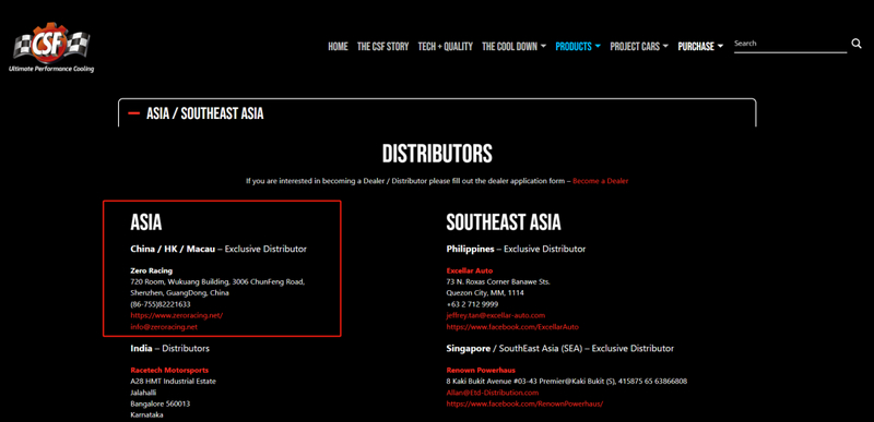 Shenzhen ZeroRacing has officially been appointed as the exclusive authorized distributor of CSF Cooling in Mainland China, Hong Kong, and Macau.