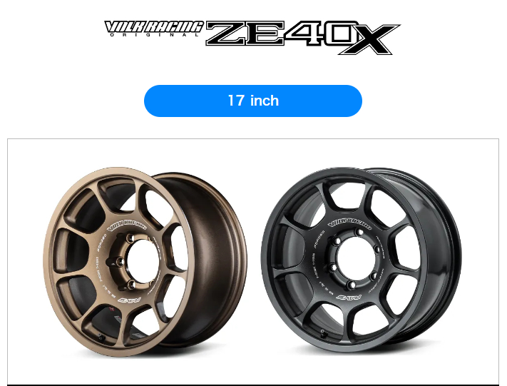 The all-new ZE40X is designed to be theultimate 4x4 off-road wheel option in the series: featuring a reinforced designbased on the ZE40 spoke pattern to withstand the enormous loads of off-roadvehicles; an innovative center disc design that enhances both aesthetics andoverall strength; through one-piece forged construction of spokes and disc,durability is significantly enhanced, effortlessly conquering gravel and ruggedterrain.