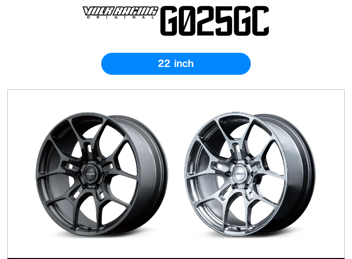 The G025GC inherits the characteristics ofthe VOLK RACING forged series, offering higher strength and rigidity, and isspecifically designed for heavier large vehicles with 5-lug or 6-lug bolt patterns.