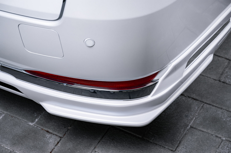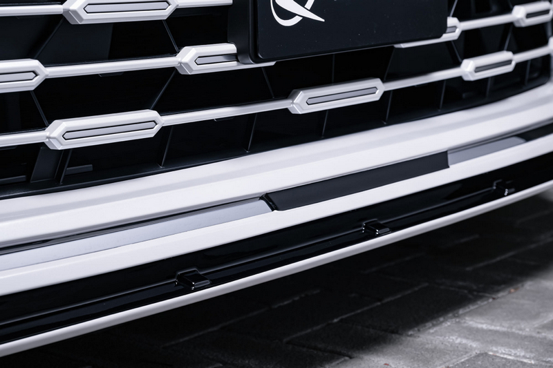The most captivating aspect of this kit’s design lies in the treatment of the front lower splitter, side skirts,and rear diffuser (three points at the bottom). Through meticulously craftedhollowed-out sections, the kit subtly reveals the original refined chrome trim.The overall visual effect remains clean and sophisticated, yet effectivelydraws the eye to accentuate the premium quality of the chrome accents.