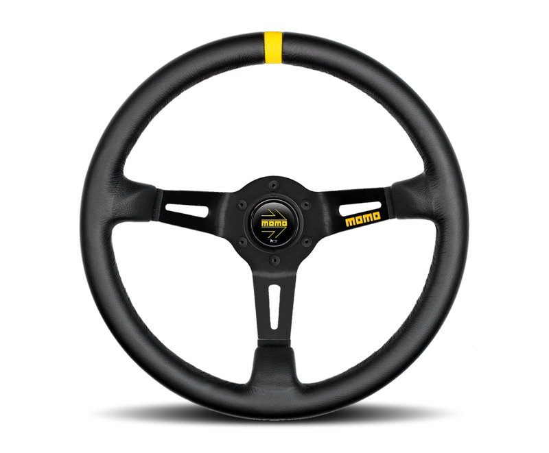 MOD. 08 Racing Steering Wheel: With a depth of 85mmand a diameter of 350mm, along with a grip size of 30x30mm, it is specificallyengineered for rally enthusiasts and touring car drivers. The standard gripcomes wrapped in either black suede or black leather.