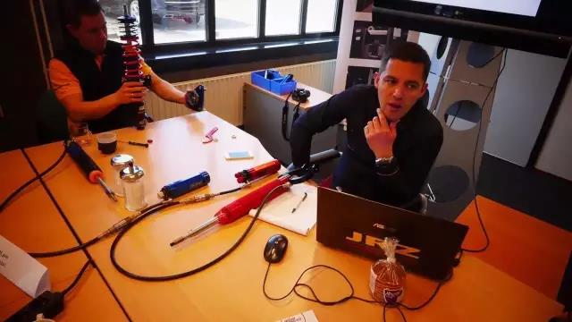 在相互介绍完后,在JRZ销售经理Theo及技术总监Eric的带领下进入会议室,Theo亲手为我们奉上茶水。接下来的两天培训就由Eric来主持。在会议室里,销售经理Theo及技术总监Eric讲解了JRZ的历史、JRZ的生产流程,如何组装一支符合规格的避震,以及JRZ的技术精髓。