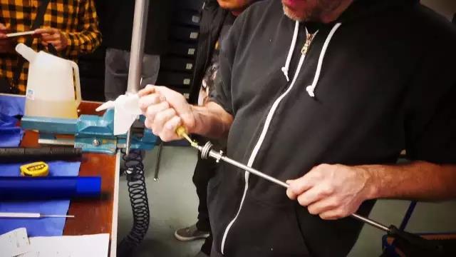 以下正在为一套RS Pro避震机进行抽真空加油,由于RS Pro系列避震为单桶设计,所以必须将其内部空气完全抽空,才能灌油,同时需要机器来完成工序。