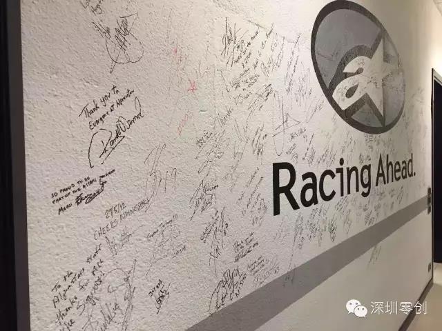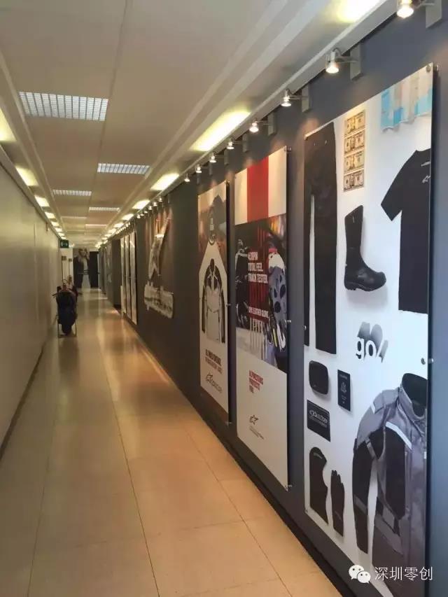 A星工厂的文化走廊,不但介绍了A星所有的产品如赛车服、手套、赛车鞋、赛车内衣等一系列