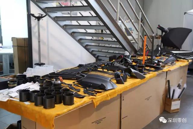 摆放整齐的仓库和准备拍照的碳纤维零件
