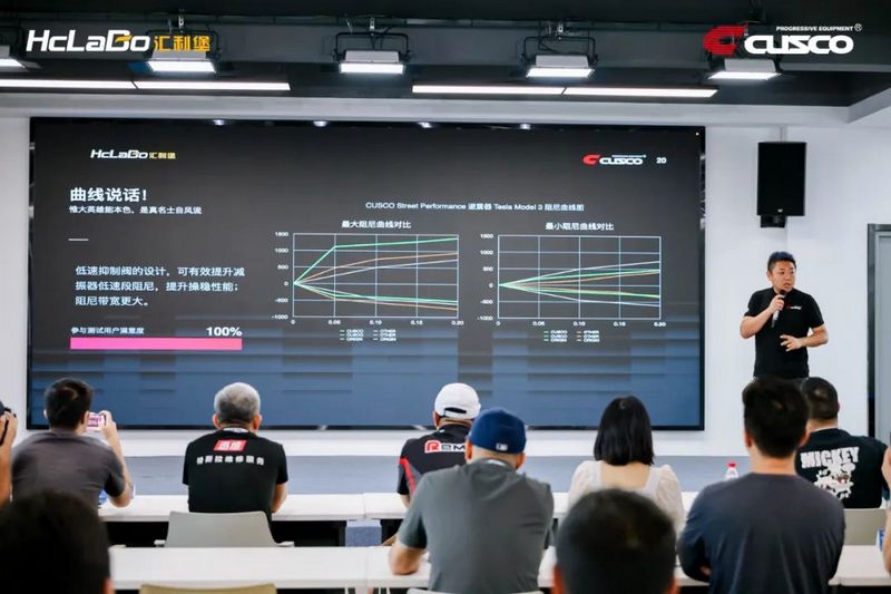 发布会上,汇力堡汽车运动总经理邵帅先生向与会嘉宾详细介绍了CUSCO SP系列避震器的性能特点,同时通过