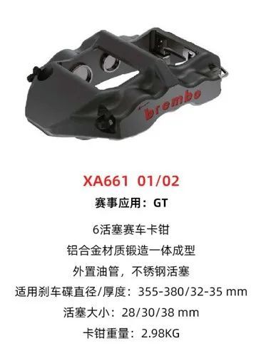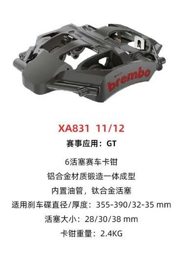 型号如 XA831 赛用卡钳,此外,Brembo PISTA丨FF 卡钳也采用了类似设计。
