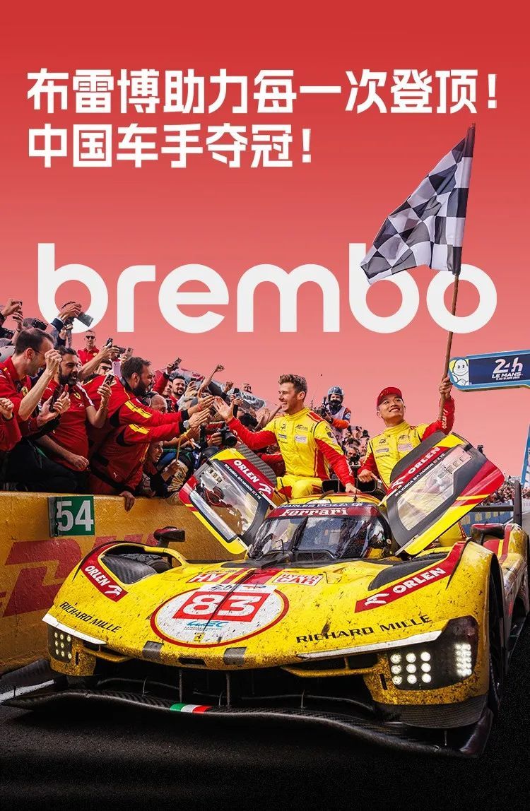其支持的车队已累计赢得32场胜利。目前,Brembo也是勒芒赛事的官方刹车技术合作伙伴(Braking Technology Partner),