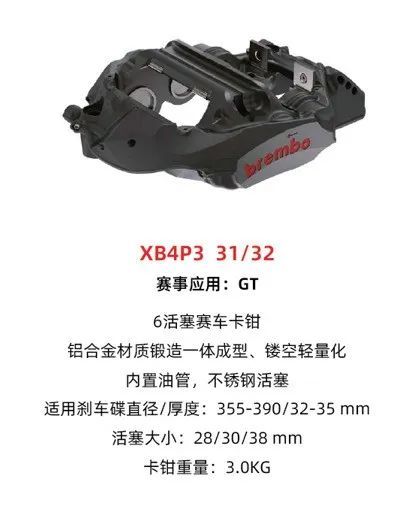Brembo Racing 民用系列中,如 XB4P3、XB6T2 等卡钳也明显采用了类似的技术。
