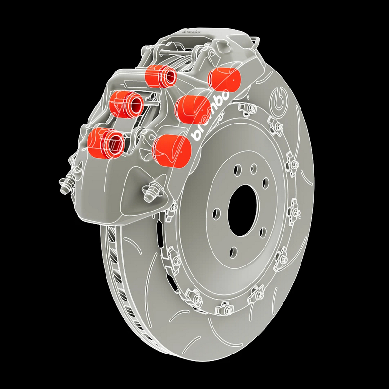 Brembo GT系列卡钳套件最明显特点在于其渐进式的制动反应和稳定的性能,对车辆悬挂要求较低。其6个制动