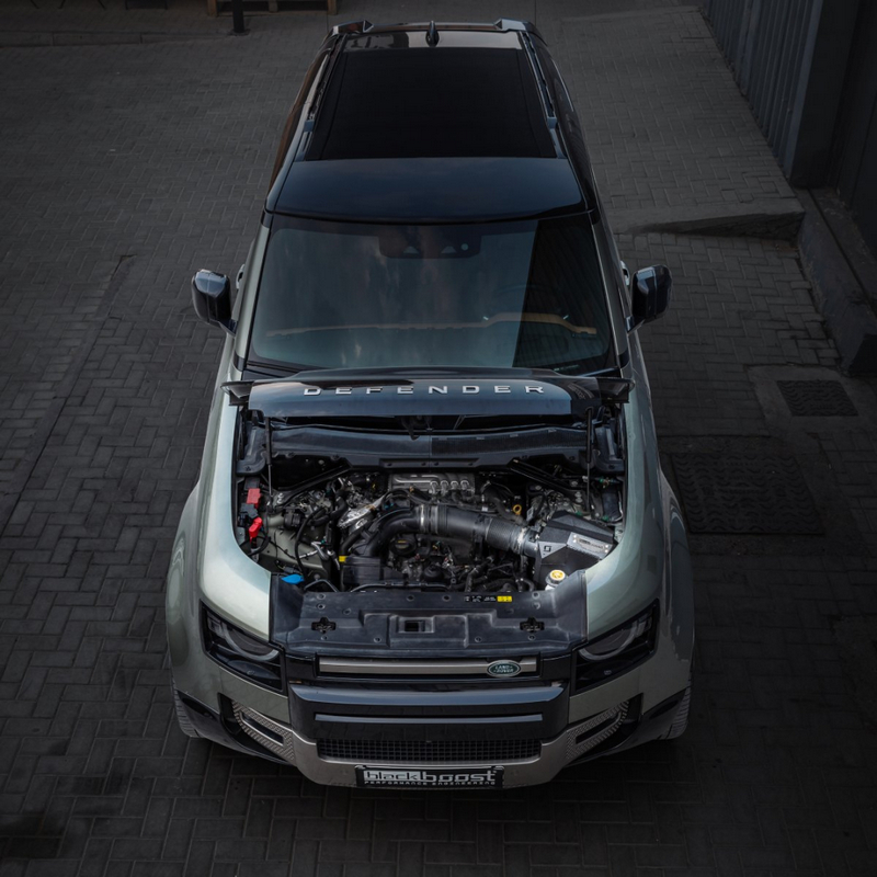 该方案专为追求更强动力、更高效率和引擎舱美观度的车主量身打造。BlackBoost冷空气进气系统精准解决了上述瓶颈,在引擎舱有限空间内实现了最大气流与低温进气的最佳平衡。另外对于5.0T的卫士车型高性能进气系统也即将推出。