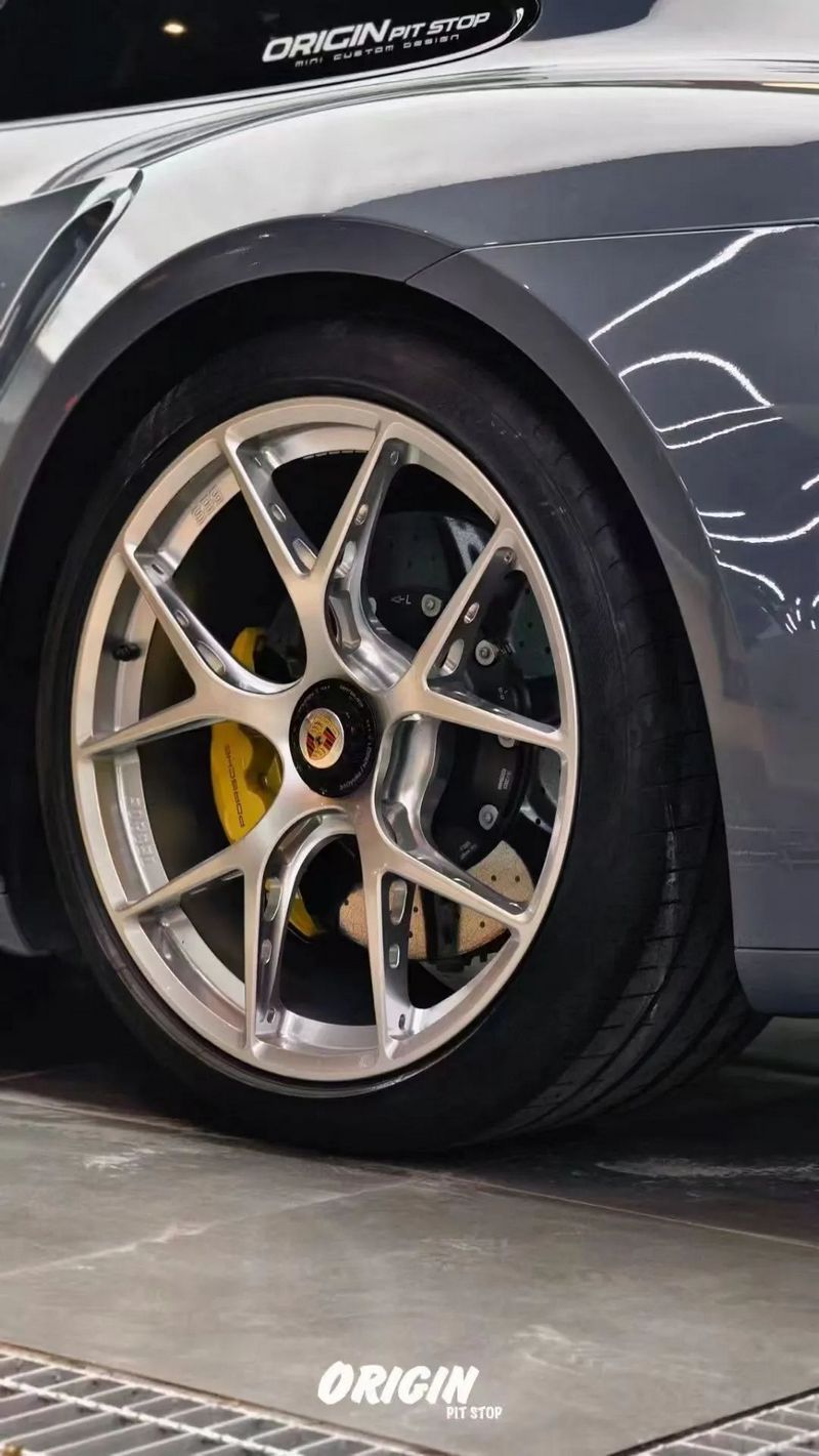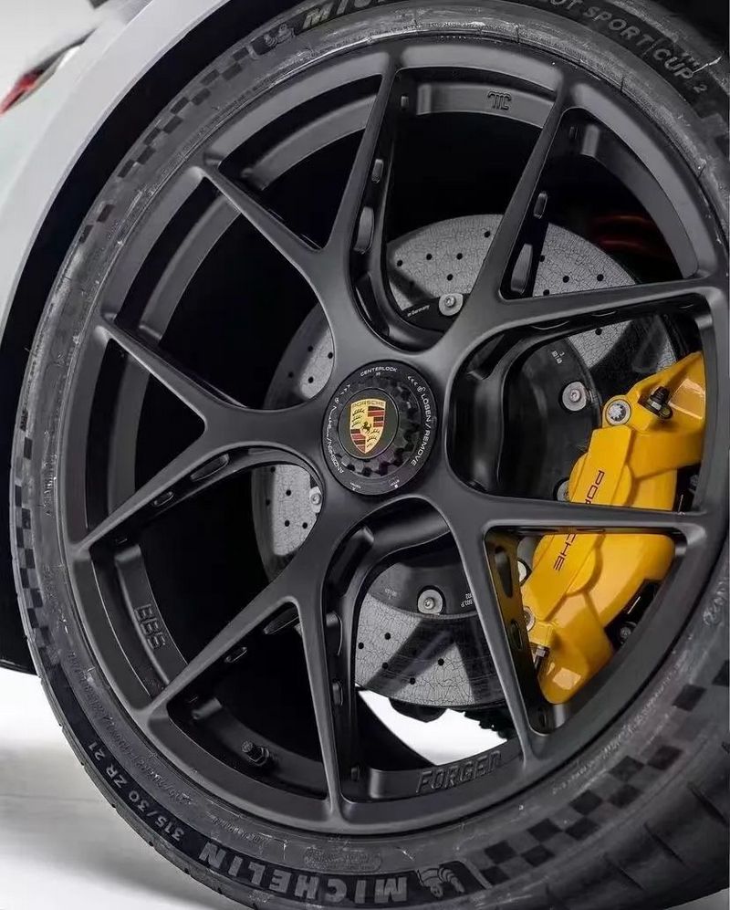 FI-R EVO作为BBS MotorSport针对高性能车型特别开发的型号,以极致镂空偷轻的设计理念为主要特点,与轻量化的718 Cayman GT4RS可谓高度契合。FI-R EVO通过35处镂空结构,实现进一步轻量化:19英寸版本重量为7.6千克(较原版FI-R减轻0.2千克),20英寸版本重量控制在8千克以内。
