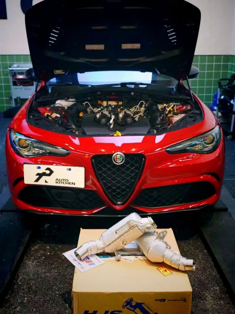 阿尔法·罗密欧,一个深植于赛道基因与意式美学的传奇品牌,始终以其独特的设计和优异的性能吸引着众多车迷的目光,特别是其Giulia Quadrifoglio(四叶草)正是这一精神的代表。作为Giulia高性能版本的四叶草,搭载源自法拉利技术的2.9T V6引擎,拥有520马力和600N·m的强悍动力,配合碳纤传动轴与机械限滑差速器,官方零百加速3.9秒,可谓一台不可多得的轿跑神车。本次案例由深圳锐鑫汽车厨房操刀,为这台Giulia四叶草升级德国HJS高性能三元头段,进一步释放其深厚的性能潜力。
