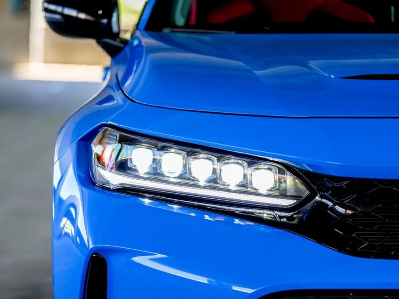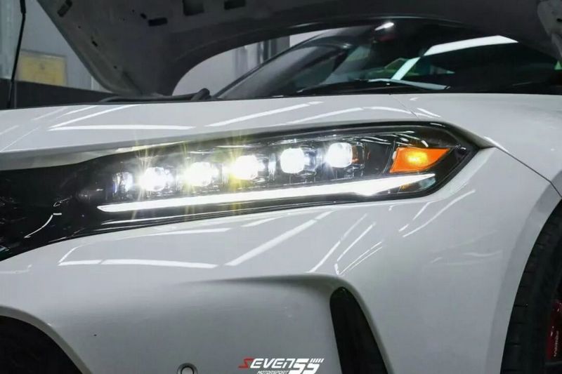 为塑造简洁而富有力量感的视觉形态,该头灯采用5个水平排列的专利3D冰立方透镜,构成极具辨识度的照明模块。该设计在延续11代思域激进前脸风格的同时,实现了功能与美学的统一——所有透镜均具备近光功能,其中内侧两组更采用双光设计,可无缝切换远光,提供超越原厂的照明性能与视觉表现。